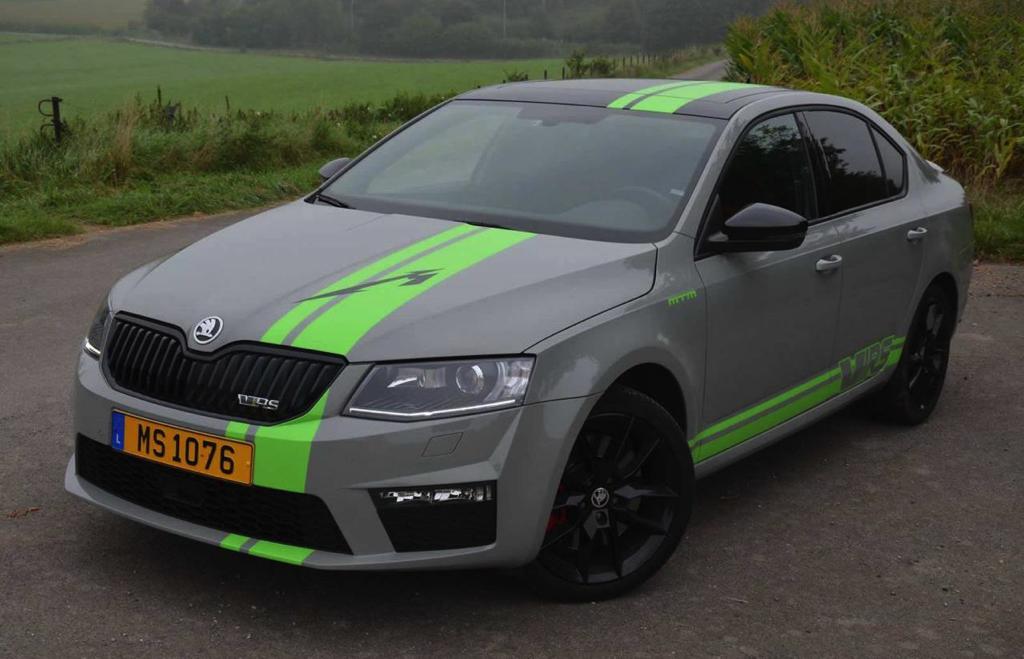 MTM Skoda Octavia vRS also gets a Meteor Grey wrap with green stripes and graphics package, as well as gloss black wheels. The tuner was apparently content with the way the vRS looked in terms of body kit and interior. Being a range-topping model, the vRS also gets from the factory uprated breaks and suspension.