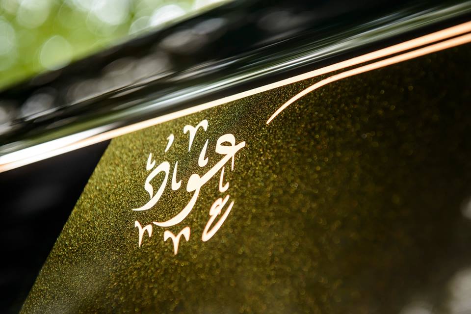 The interior design of Rolls-Royce Phantom Coupe Oud edition has a heavy brown look to it, what with the leather, all those wood veneer trims, and the starlight roof. The Arabic word for ‘Oud’ is found etched on the headrests and also painted on the end of the coach line. The gold spirit of ecstasy is also a nice touch.