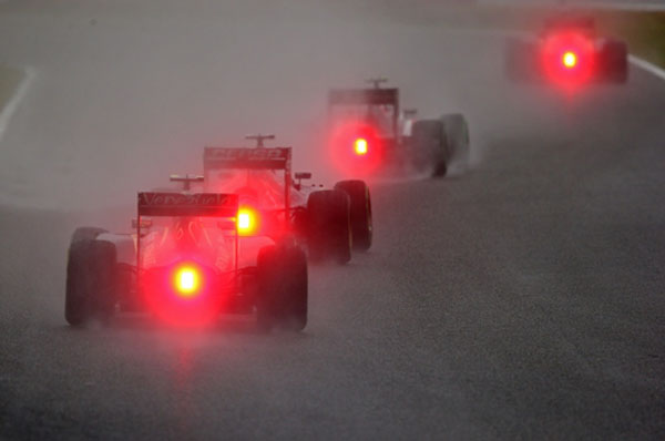 The recovery team did a good job in reaching Sutil’s car, but when the track is this wet and cars are still effectively racing, surely the chances of another car making the same mistake are significantly increased? This is another aspect of safety the officials will have to consider if they are willing to let cars circulate in bad weather conditions.