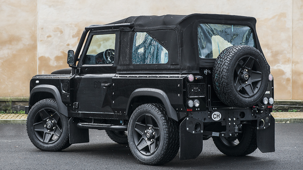 The semi-open-top Land Rover Defender SVX gets a bespoke all-black treatment. The exterior is finished in Santorini Black, complemented with 20-inch Volcanic Black Mondial wheels shod with 275 x 55 x 20 off-road tires.