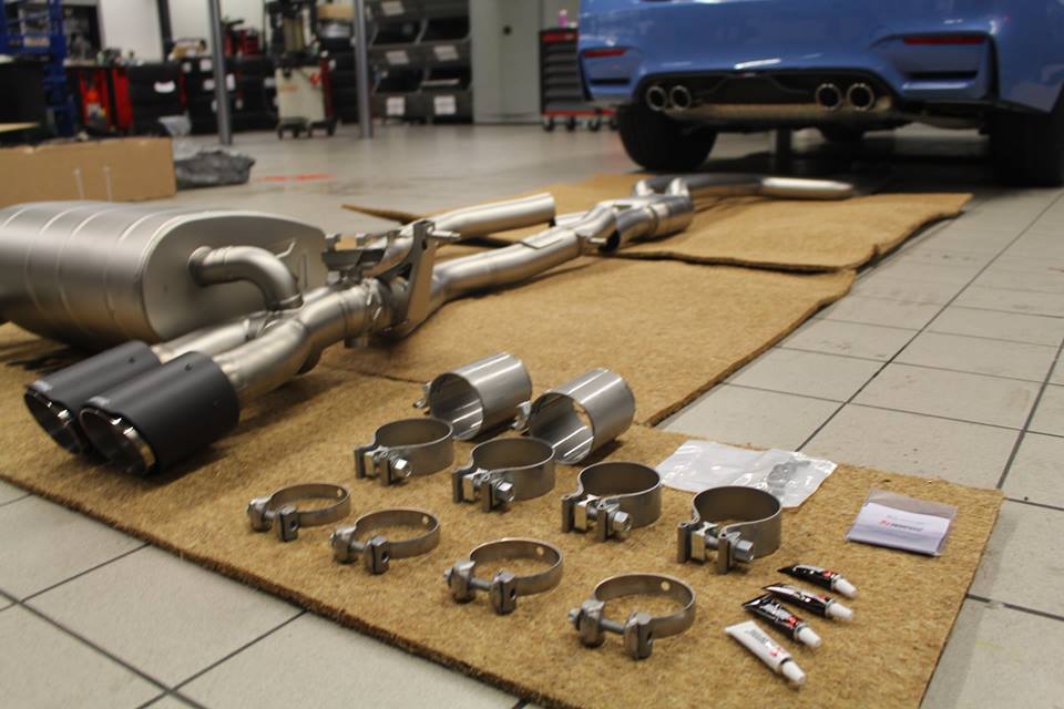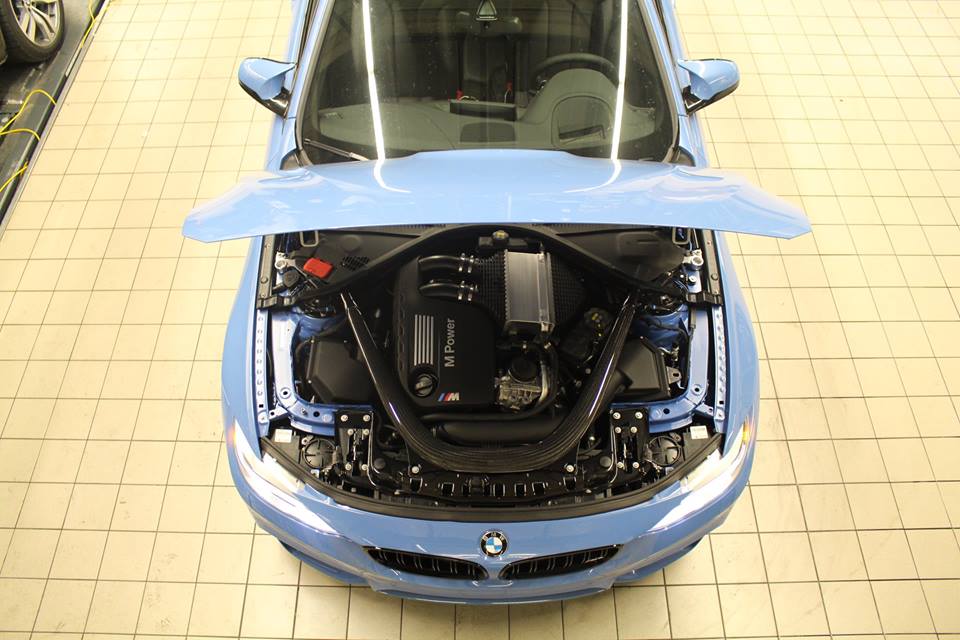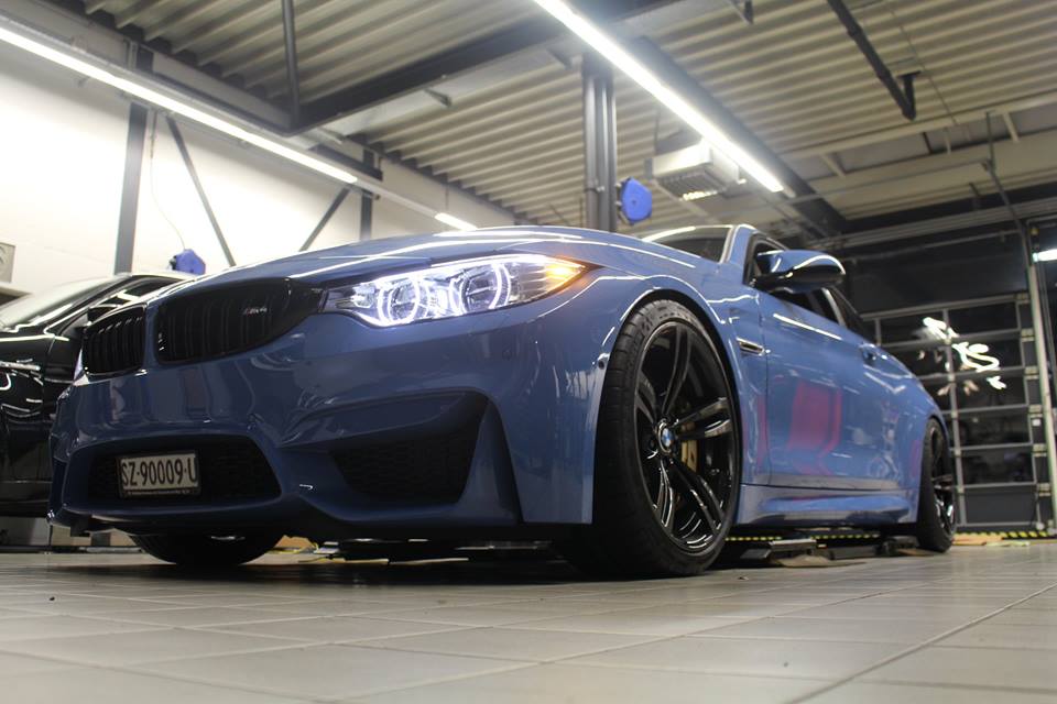 Neuhaus BMW M4 arrived at the workshop as a standard F82 M4 Coupe wearing a unique Yas Marina Blue Mettalic paint job, gloss black M wheels, and golden M brake calipers. These guys then added to it the best exhaust system available for the M4, new turbos, uprated suspension, and M Performance aero kit.