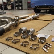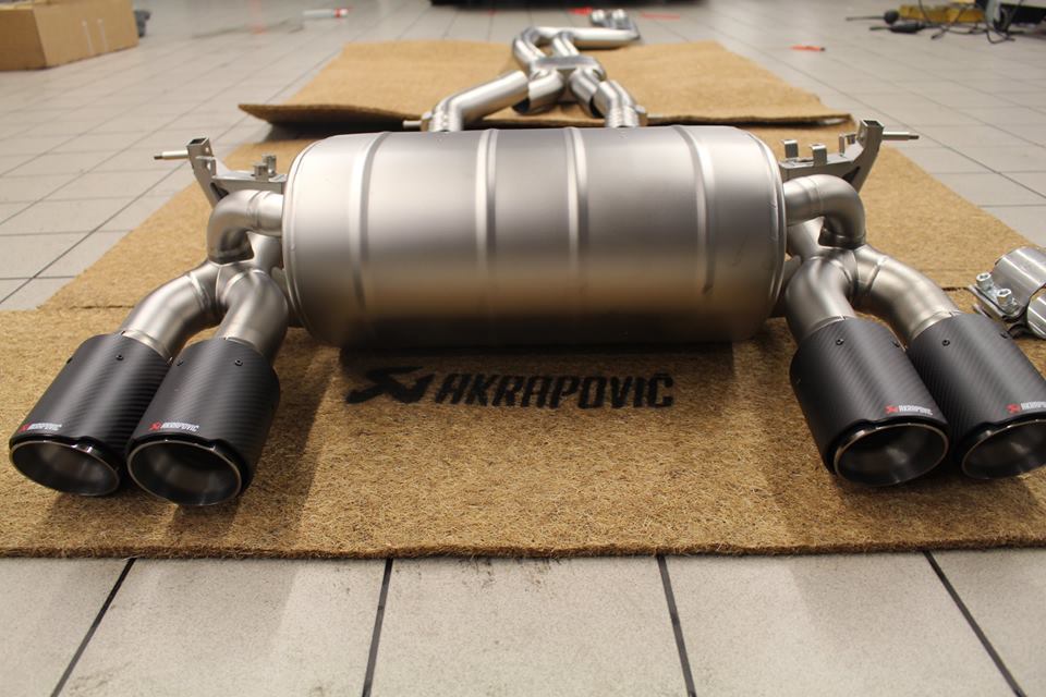 The exhaust is Akrapovic Evolution System made from titanium with sexy carbon fiber trips, and it sounds sweet: