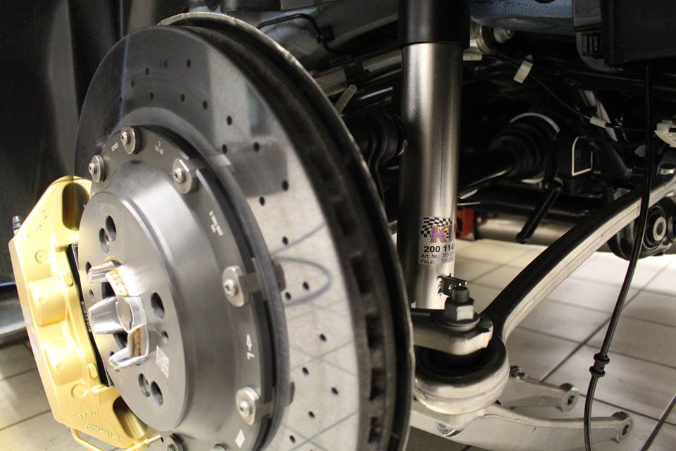 The M Performance kit on this M4 includes blacked-out front grilles, side mirrors, tail spoiler and bespoke rear diffuser for those glorious tailpipes. The car also owes a lot to the KW Variant 3 coiolvers that lower the ride height and give it that awesome stance.
