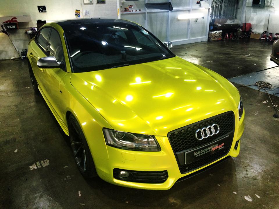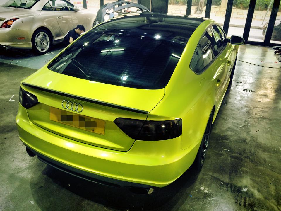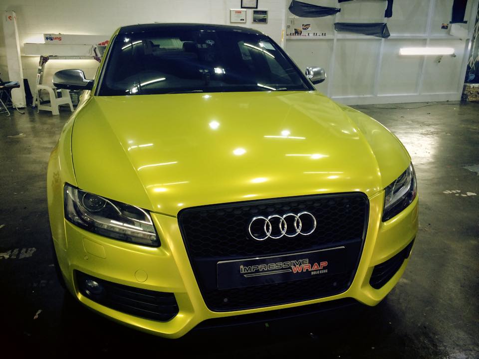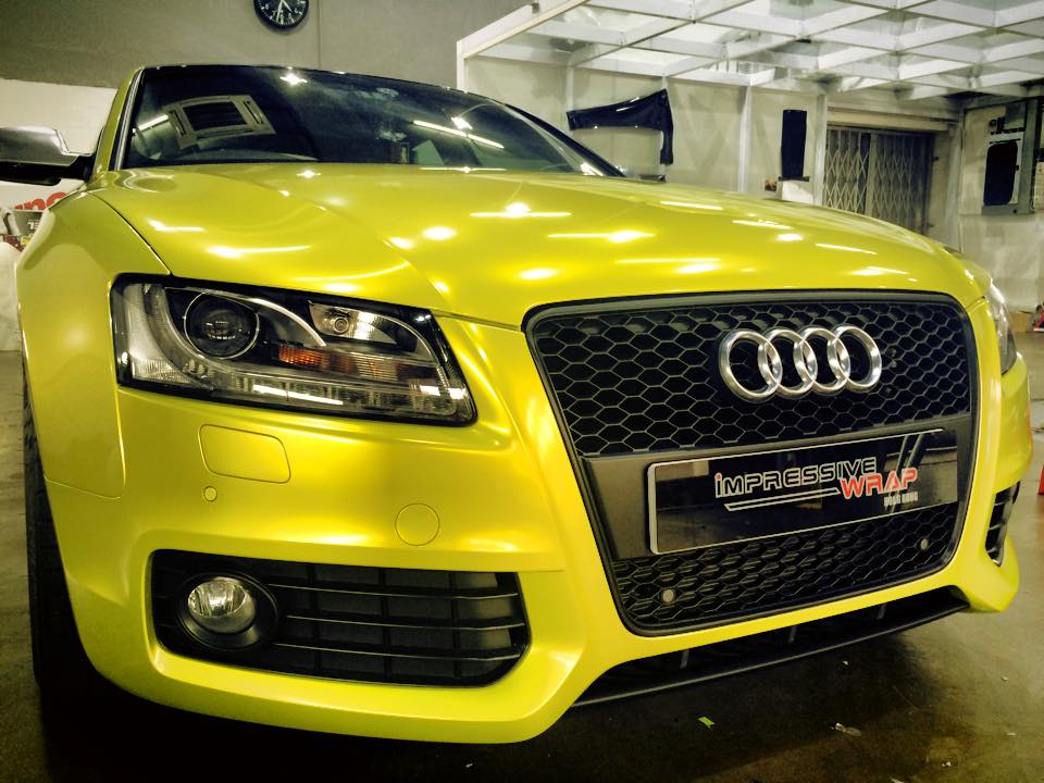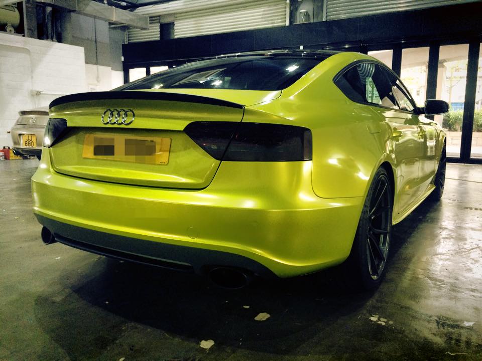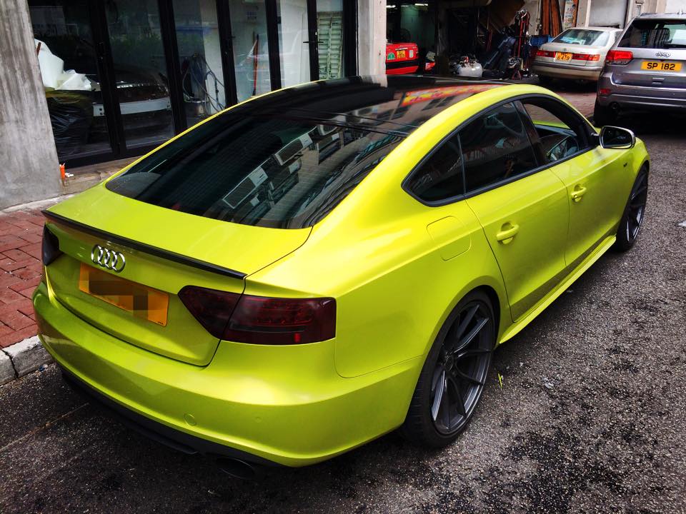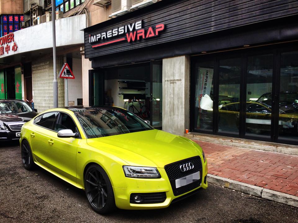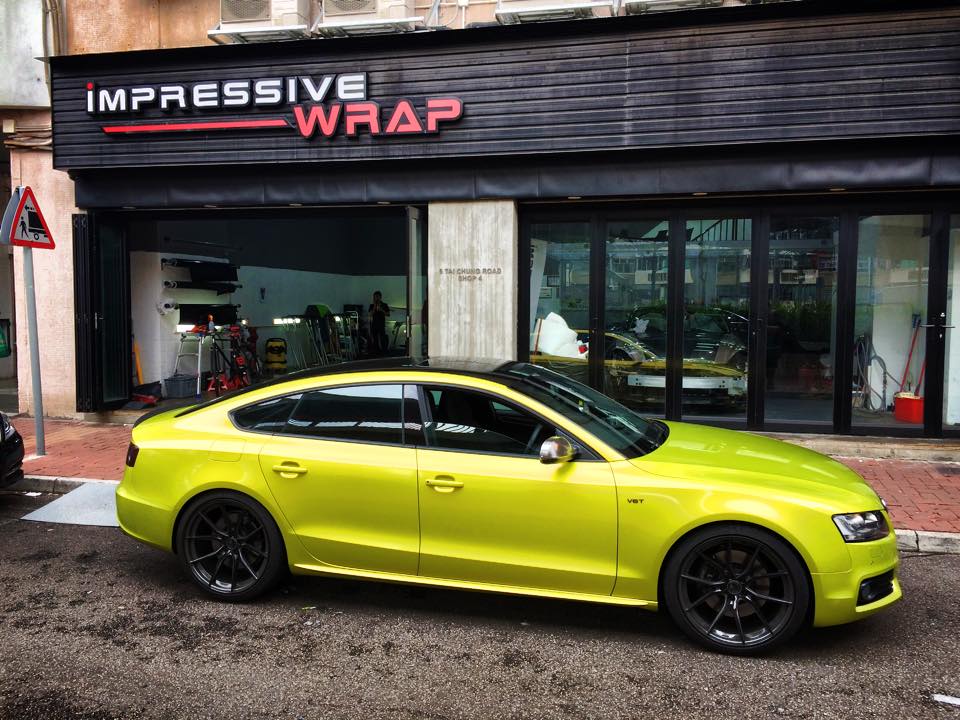 Another one of a kind project by the Hong Kong branch of Impressive Wrap, this time an Audi S5 Sportback. The goal was to give this classy, yet dull German saloon a bit more joie de vivre by wrapping it in an extremely showy color. Job done, we think.