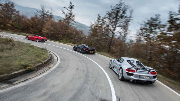 The magazine’s Tom Ford, Charlie Turner, and Ollie Marriage are now in Wales with the Ferrari LaFerrari, McLaren P1 and Porsche 918, all of them supplied by the manufacturers not private owners, which means they can really wring them out and find out which is best.