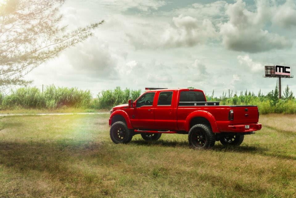 This red monster you see here is a one of a kind Ford F-250 super duty truck, customized by the guys from MC Customs. The standard F-250 is a pretty scary bit of kit, but this one with all the extra bits and that special color is just off the hook!