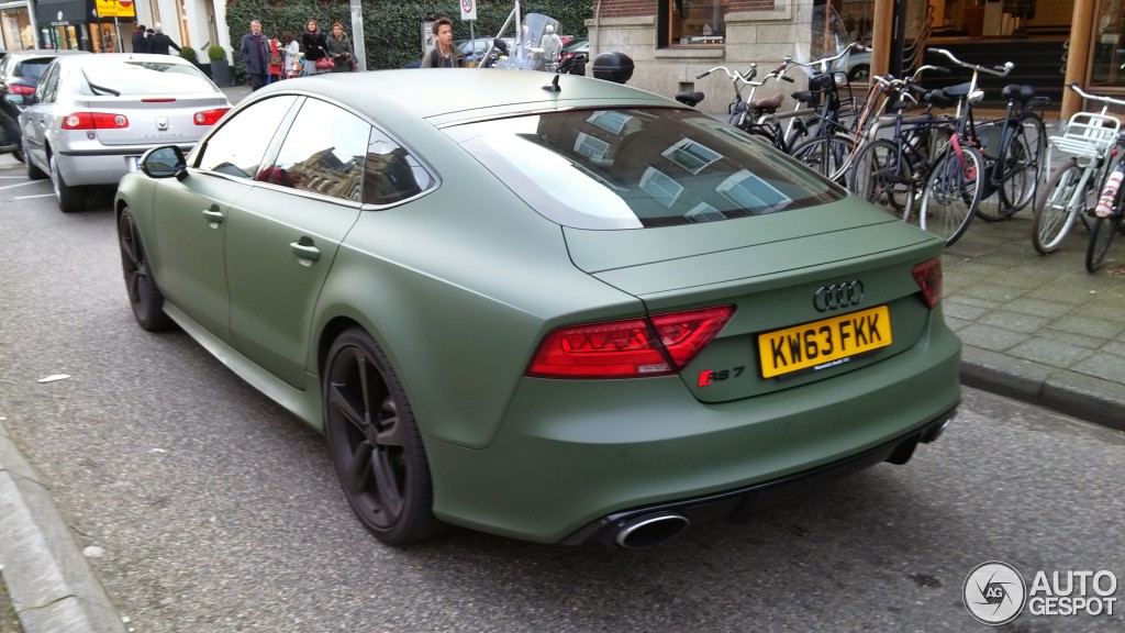 The reason this car is extra cool, apart from the amazing color, is the contrast. The RS7 is a serious luxury and performance machine. You usually expect to see it sober colors like grey or black. That matte green, on the other hand, you’d expect only to see on a Humvee or an APC. But it does suit the Audi rather well. Maybe that’s because the RS7 is as powerful as a tank!
