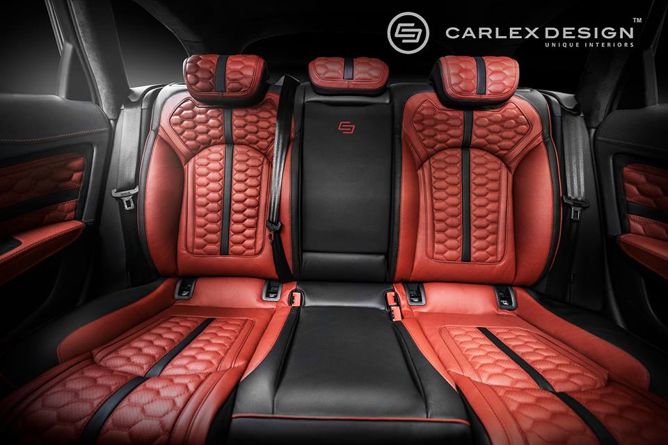 Carlex Design Audi A6 gets in this program a complete makeover including new upholstery, trim pieces, headliner, the lot. The work begins with the seat upholstery where Carlex has come up with a unique honeycomb pattern using overstitching and exclusive shapes built into to the leather, complemented with contrast stitching and piping. The dominant color is red, garnished with black accents.