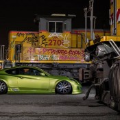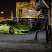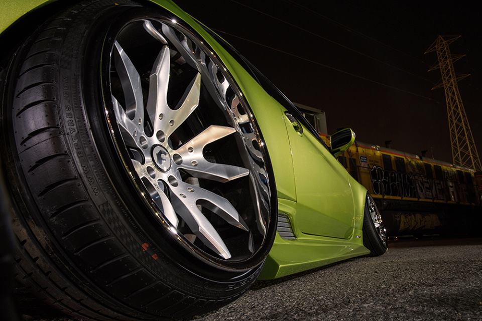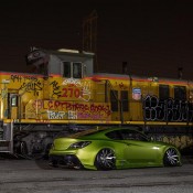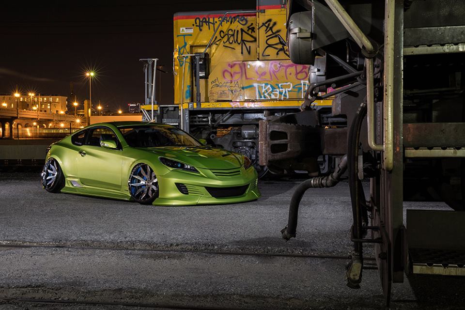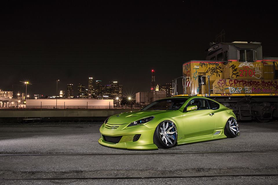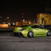 Among the main highlights of the wide body Hyundai Genesis Coupe we can mention the custom body kit consisting of bumpers, spoilers, sills, skirts, bonnet, and trunk lid, air suspension, custom lights, and of course those 20″ Forgiato Artigli-ECL wheels installed at extreme cambers. This car undoubtedly boasts a serious engine upgrade as well, plus a properly loud exhaust system.