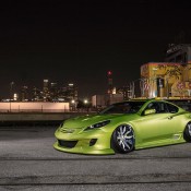But that’s for the future. The subject of this post is a custom version of the old Geni Coupe on a set of extravagant Forgiato Wheels. The wide body Hyundai Genesis Coupe here is an ‘extreme’ machine in every sense of the word. Everything about it – from the color, to the wheels, body kit, etc.,- is way, way over the top.