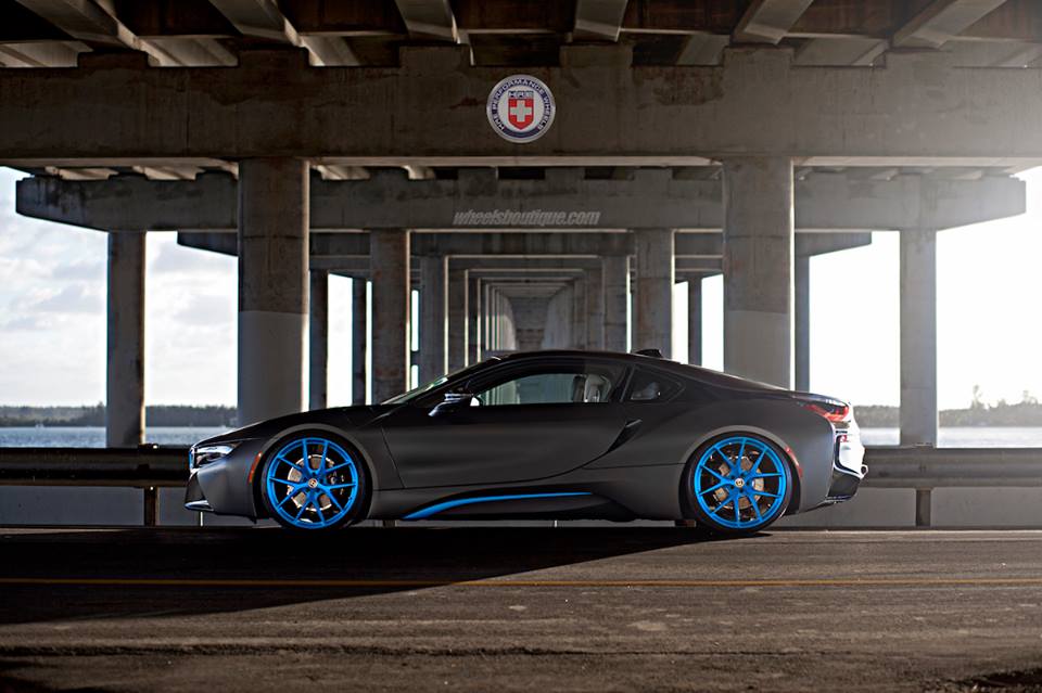 HRE Wheels and Wheels Boutique strike again with yet another over the top project, this time fitting a BMW i8 hybrid sports car with a set of blue wheels. Blue is kind of the official color for BMW i models, used subtly to hint at the cars’ extreme efficiency.