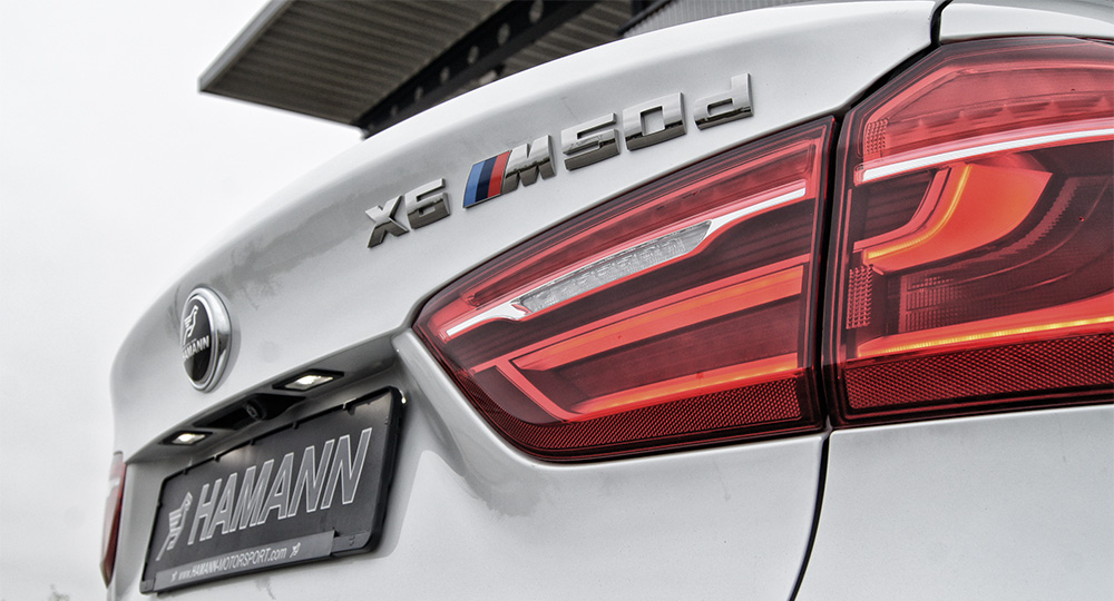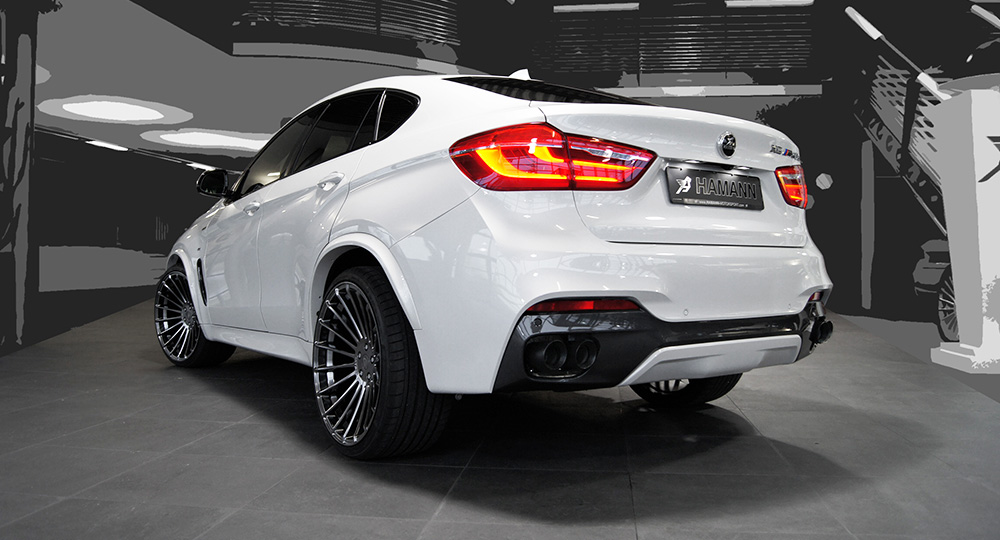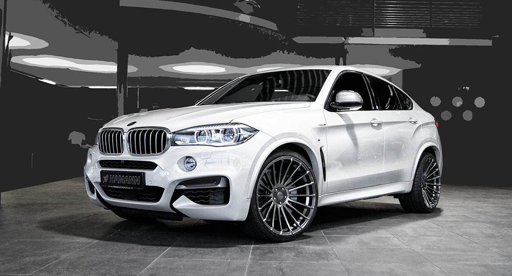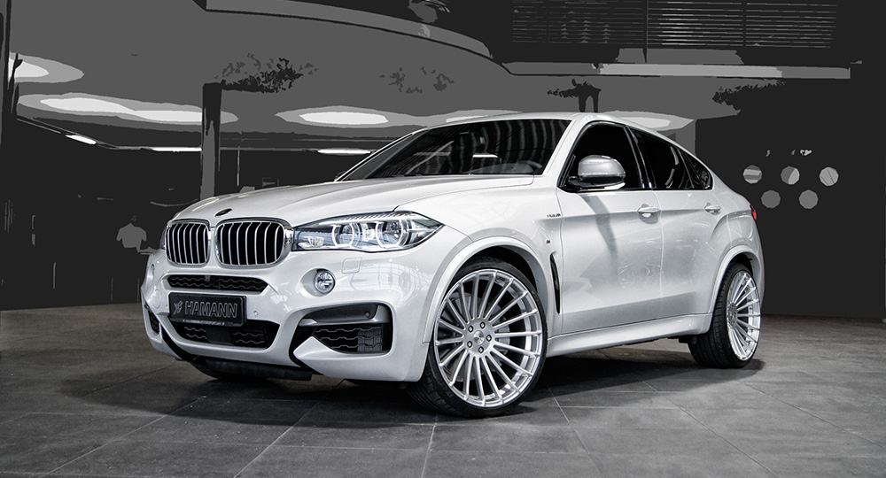 As usual, Hamann begins working on a new BMW model by first fitting it with a selection of their high-end wheels and admiring the results. The car in question this time is the new 2015 BMW X6. As luck would have it, this M50D X6 is also equipped with a few M Performance Parts which make it look sportier.