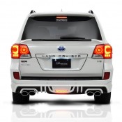 The main ingredients of Rowen Toyota Land Cruiser body kit include front half spoiler with LED spot lamps, side steps, rear under spoiler and rear tailgate spoiler. Given the rather serious character of the Land Cruiser some may find these styling parts a bit too over the top, but this Toyota is a fairly popular car and it is on sale on around the globe. Surely there are some people who would appreciate a bit of sportiness and a different look.