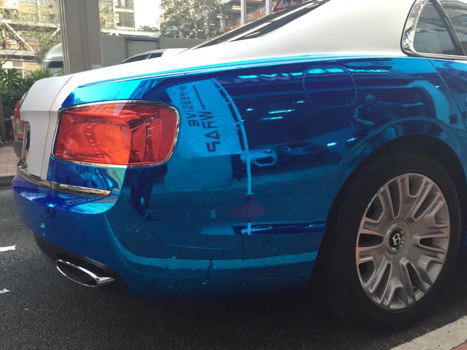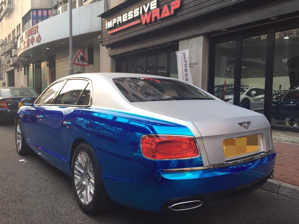 Impressive Wrap’s Hong Kong branch has done yet another over the top, ultra-cool wrap. The car getting the treatment this time is a Bentley Flying Spur, and the reason it is worth a deeper look is because IW has used a special vinyl for this car called Helix Chrome Carbon.