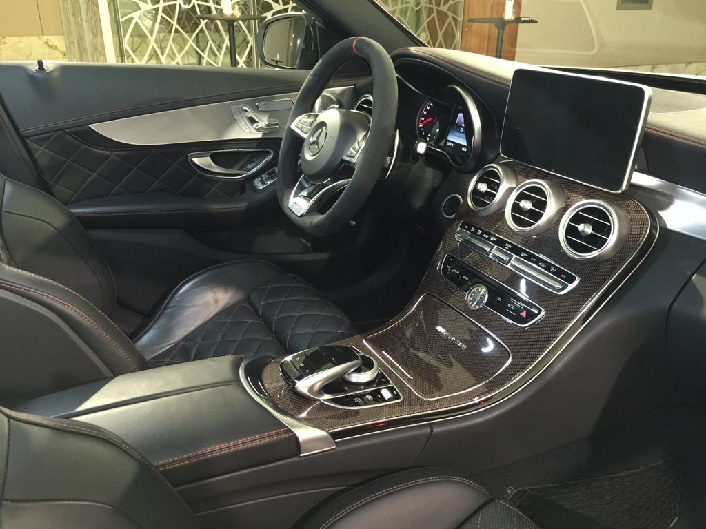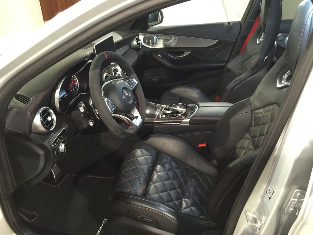 The Mercedes C63 AMG Edition 1 is based on the range-topping S-Model and comes with every bells and whistles available for this model, and lots more besides. In addition to the standard AMG body kit, which here is exposed carbon, the Edition 1 comes with custom grille and mirror caps, smoked lights, the Night Package with gloss black detailing and red garnish, and special 19-inch black AMG wheels.