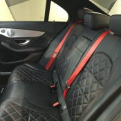 Inside the cabin Mercedes C63 AMG Edition 1 is equipped with DINAMICA package featuring exquisite nappa leather seats with contrast stitching in diamond pattern, plus ARTICO trim package and designo detailing, as well as the usual sport pedals and unique instruments. Alcantara steering wheel and red carbon dashboard are among the other highlights.