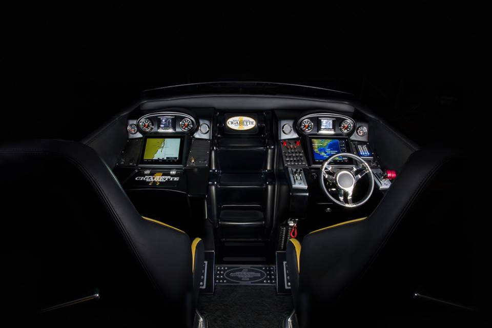 On display at the Miami International Boat Show next to a custom Mercedes AMG GT styled in the same manner as the boat, the Marauder GT S is a high-performance boat with the most powerful production twin engine ever fitted to a Cigarette.
