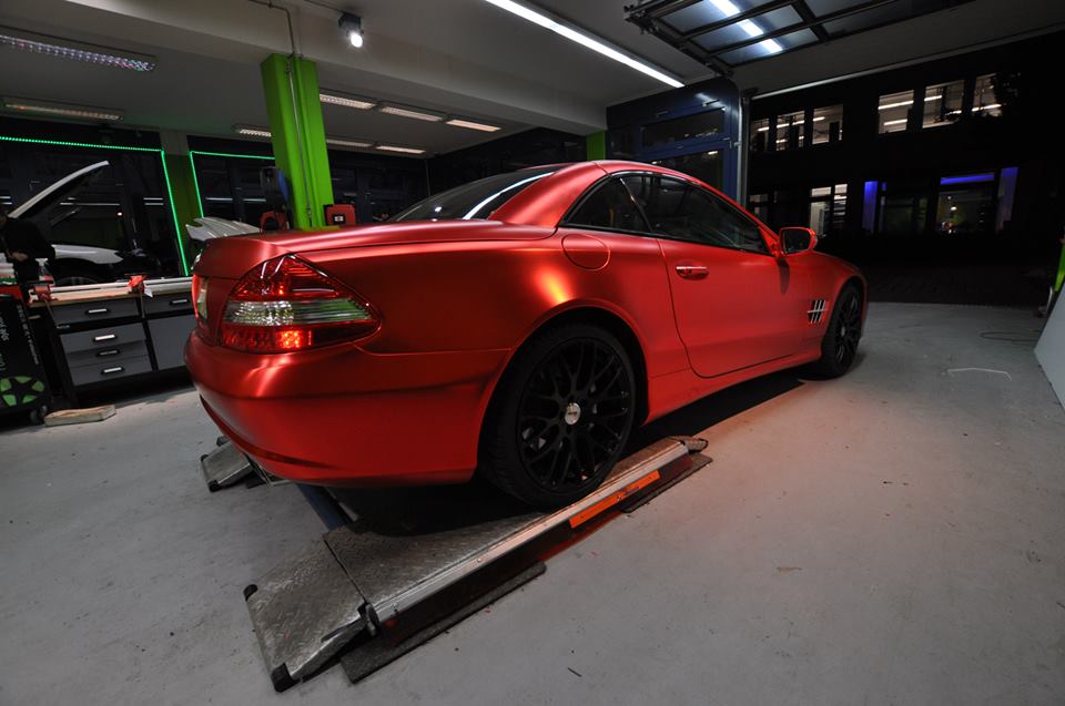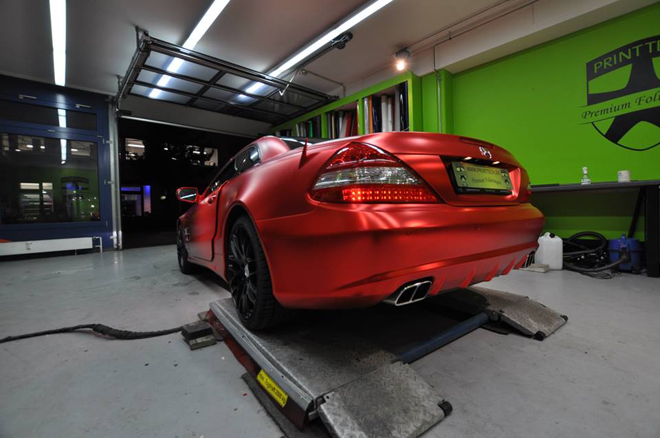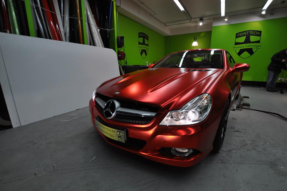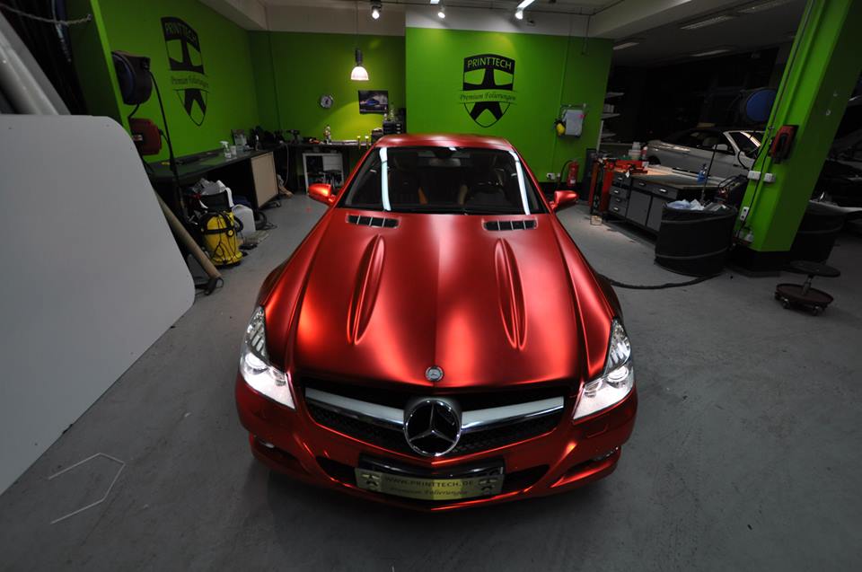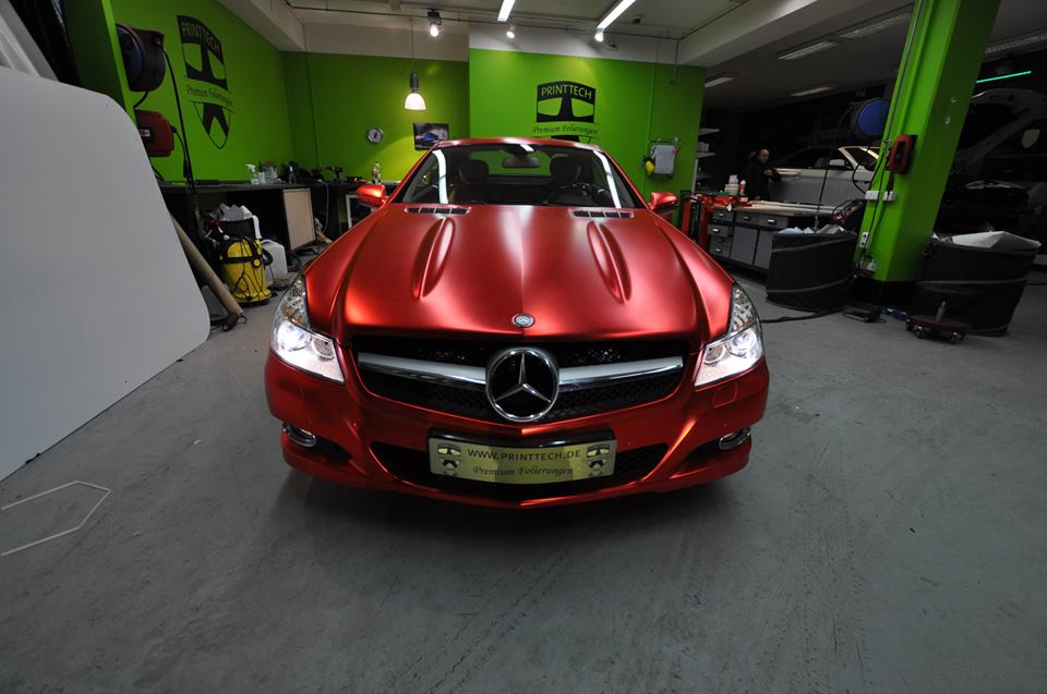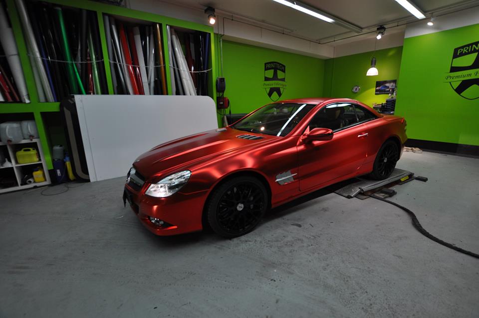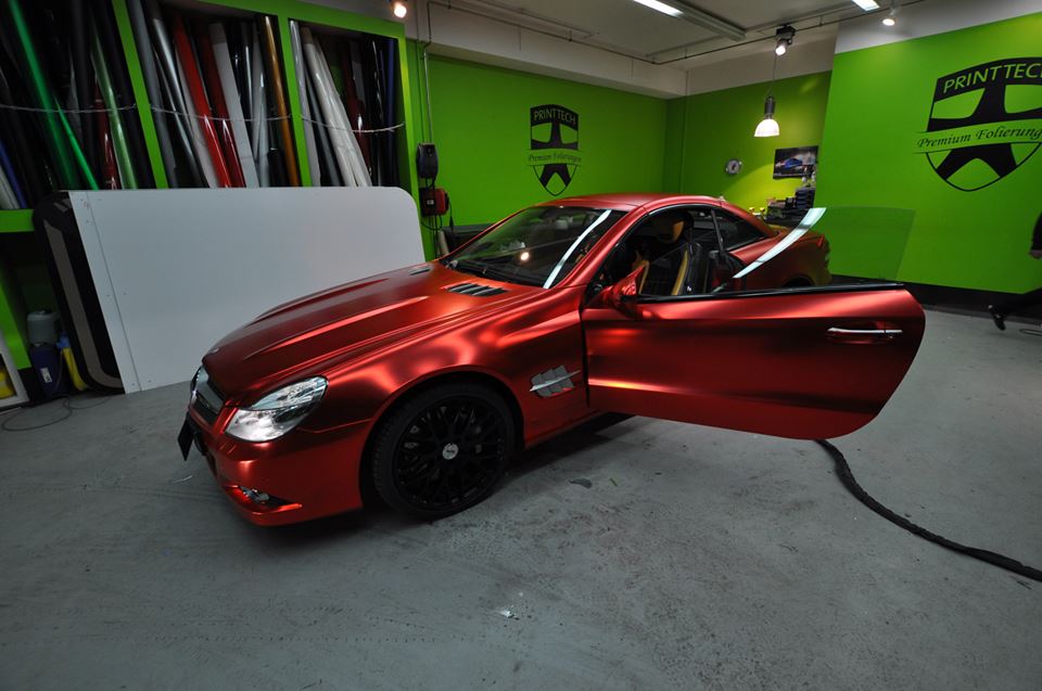 The wrapping trend is still going strong and shows no signs of diminishing. On the contrary, we are seeing new colors and patterns everyday. The Centurion Red Chrome Matte on this Mercedes SL600, wrapped by Print Tech, is the latest and, well, brightest.