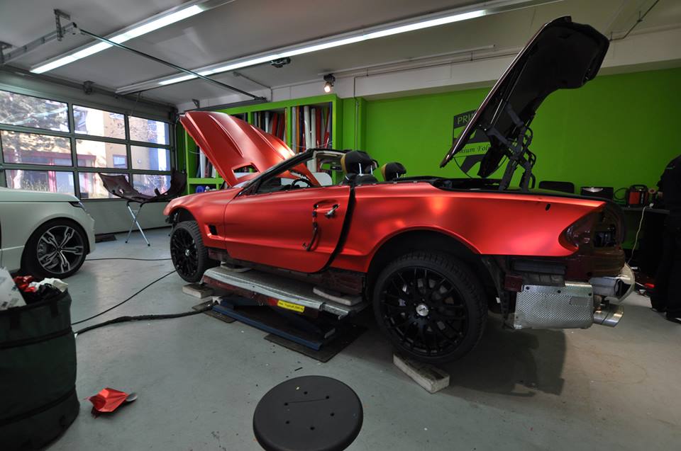 For this Mercedes SL600 R230 they went for a red/orange color which if we’re honest does not suit the dignified character of the car very well, but is sight to behold nonetheless. It is complemented with black wheels and tinted windows, but they may want to something about the interior which has two-tone beige seats.