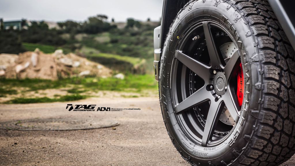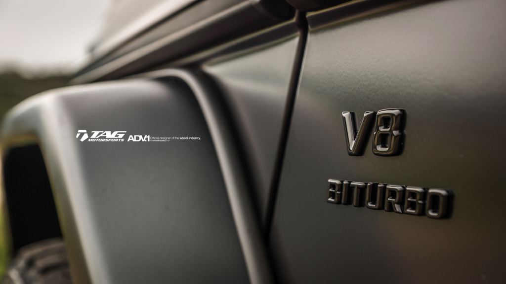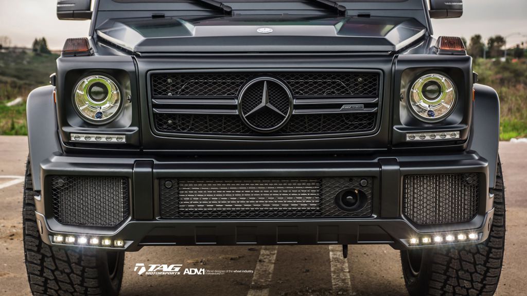 And the end result looks absolutely awesome. TAG Motorsport Mercedes G63 AMG is a matte black monster equipped with various Brabus styling parts and a super cool set of ADV1 Wheels wrapped with offroad tires you would normally find on something like the Land Rover Defender or Jeep Wrangler. The ADV6 MV2 wheels measure 20×10 inch on all four corners and finished, naturally, in matte black.