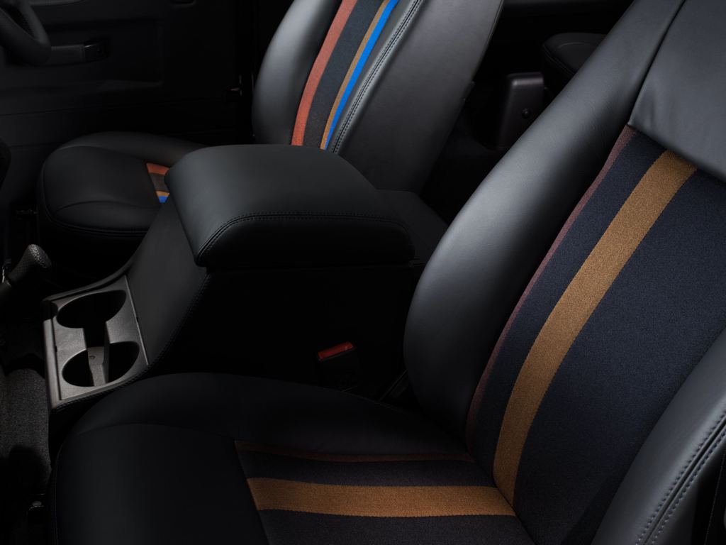 “This is a complete one-off; I wanted to give this Defender a feeling of luxury, so I used a mix of leather and fabric for the seats. I actually used the fabric that I design for Maharam, the American upholstery company. The vehicle features lots of special Paul Smith touches.”