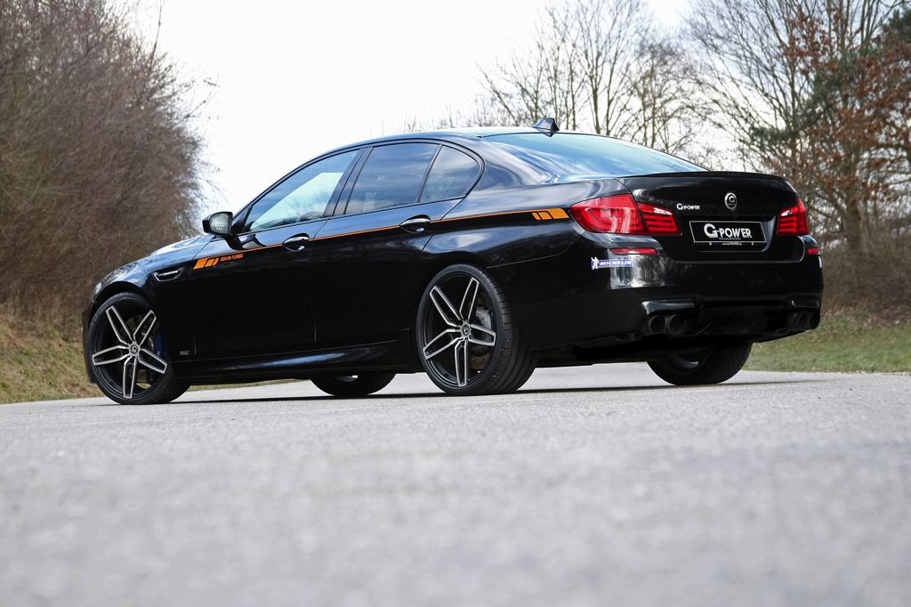 As always, G-Power BMW M5 maintains its wolf in sheep’s clothing signature dish. But there are telltale signs of its immense inner power if you look under the bonnet, where you find a carbon fiber engine cover, or at the back, where 4×100 tail pipes make a sound akin to that of a .50 Cal machine gun.