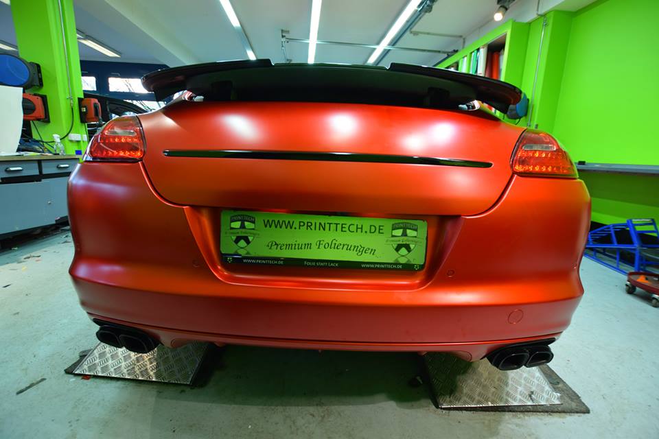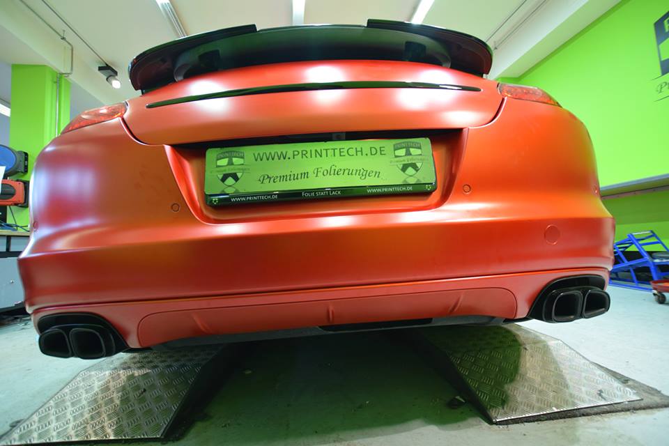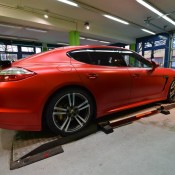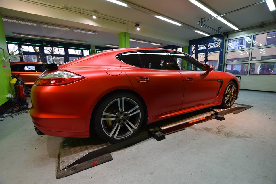 As the sportiest member of the its family, Porsche Panamera GTS has earned the right to wear fancy colors. Even the press photos Porsche releases for this version are always in bright shades of red. Taking this to another level, German wrapper Print Tech has come up with a Candy Red finish for this car.