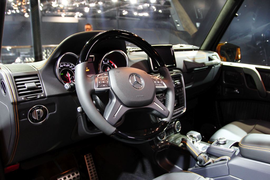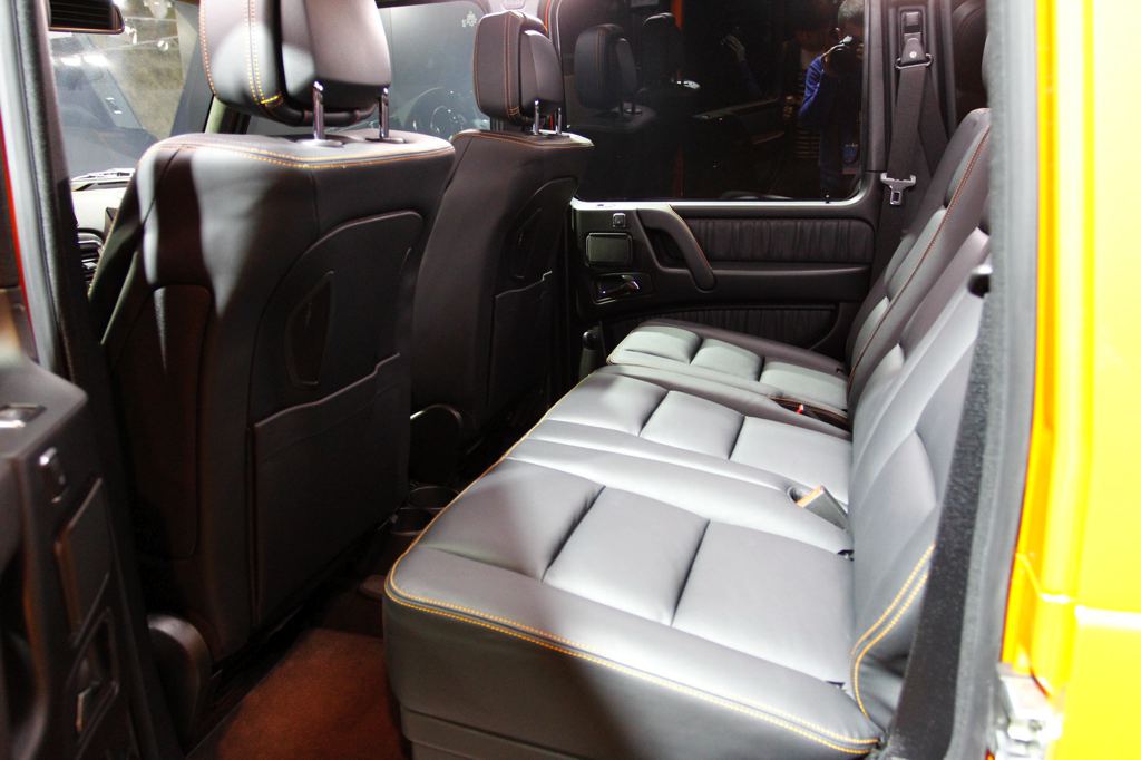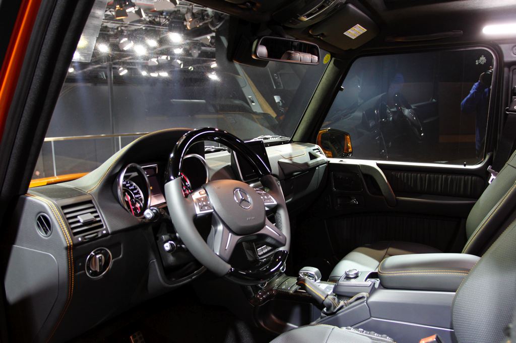 Inside the cabin the traditional and rather dull grey AMG upholstery is garnished with Solar Beam orange stitching, while Piano Black adorns the dashboard, consoles, and part of the steering wheel. The price of Mercedes G63 AMG Crazy Wild has not been revealed, but we know that the Solar Beam color is a 15,348 Euro option. Go figure!