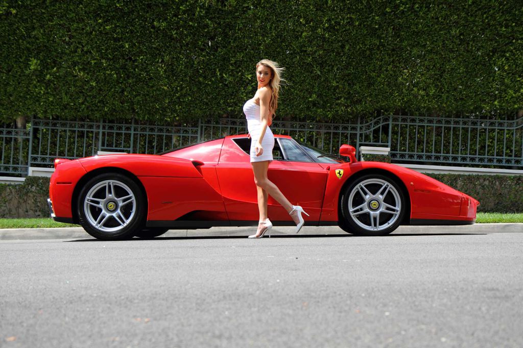 At first it might seem like a tough decision choosing between this gorgeous model and that magnificent red Ferrari Enzo. In the real world though, if you can afford an Enzo you don’t have to worry about the decision. You get the girl automatically. You get the girl without even asking!