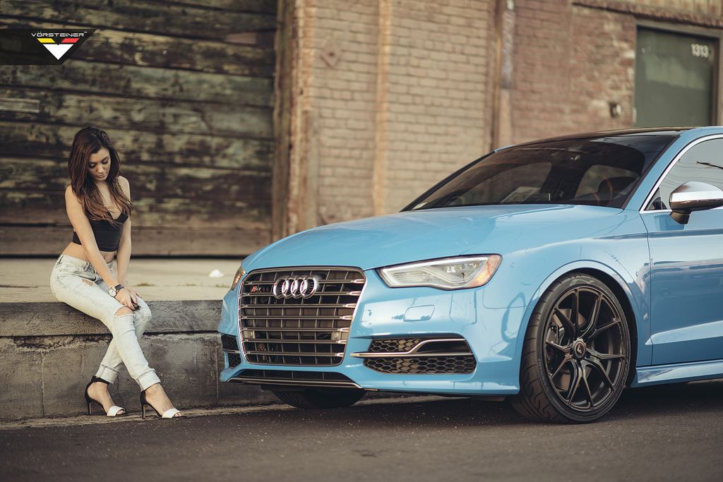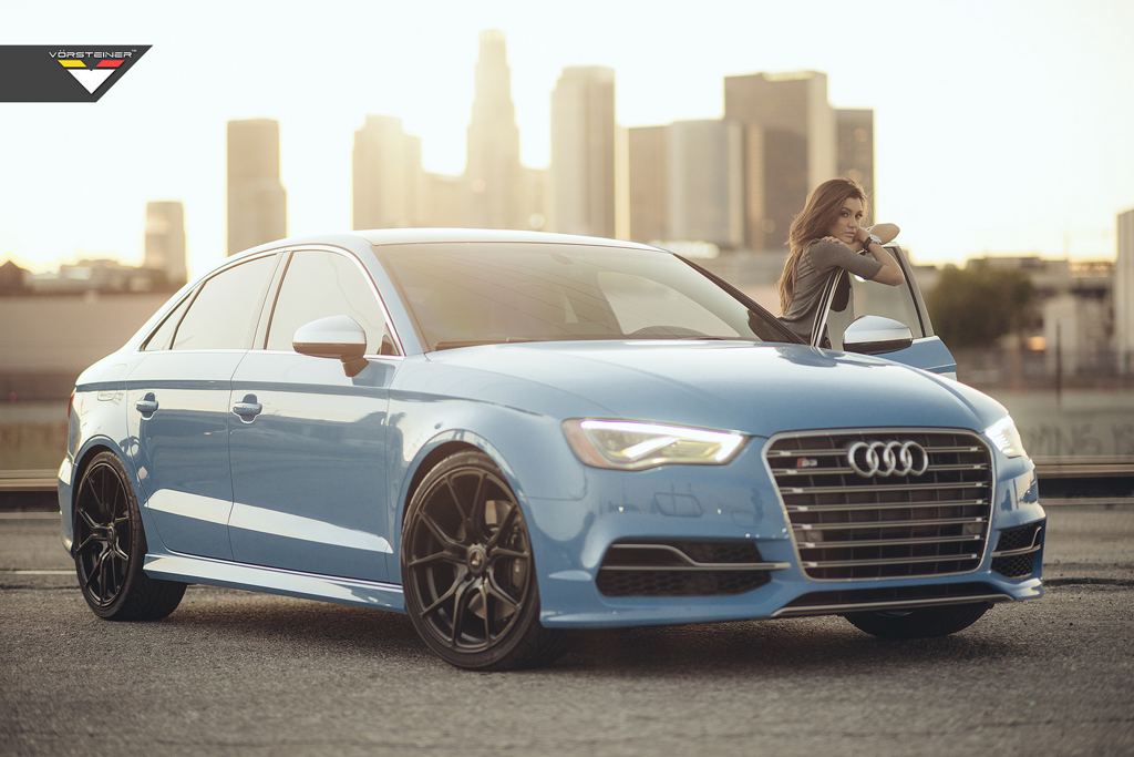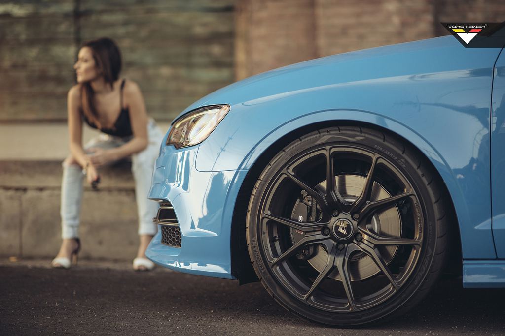 This week’s edition of weekend eye candy is kind of more down to earth than before, but only in terms of the car featured in it. It’s a sky blue Vorsteiner Audi S3 equipped with a set of the tuner’s 19-inch VFF-103 Flow Forged wheels, finished in Mystic Black.