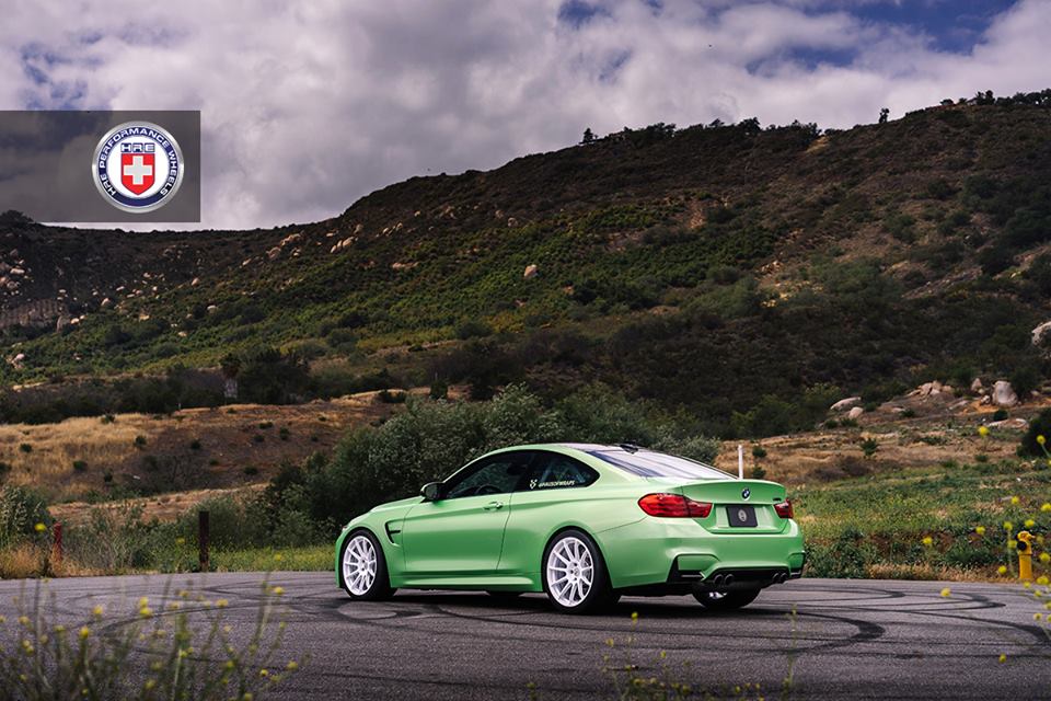 This Apple Green BMW M4 is the result of a joint effort by HG Motorsports, who fitted the car with the M Performance aero kit, and Haus of Wraps who did the wrapping. Later on HRE wheels joined the team and supplied a set of their Series RC1 103 wheels for the car. The car also benefits from Toyo tires and KW suspension.