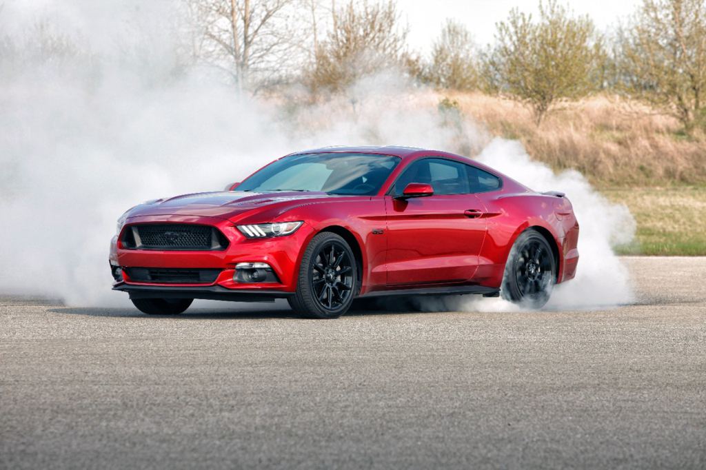 The four-cylinder 2016 Ford Mustang comes with a new Pony Package which consists of 19-inch polished aluminum wheels, tri-bar pony logo on the grille, side stripe and chrome window surround. Meanwhile the GT gets the Black Accent Package for Fastback and convertible models, including 19-inch black-painted alloy wheels, black decklid spoiler, dark taillamp trim, and 5.0 and pony logos in black.
