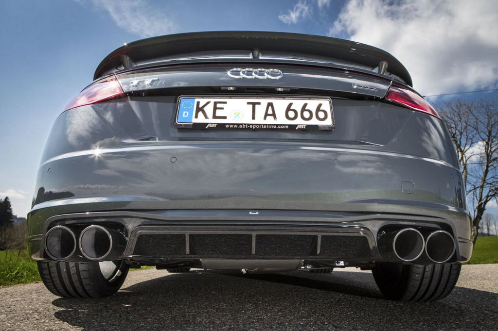 On the styling front, ABT Audi TT benefits from a revised front bumper with sportier intakes and grille, new mirror caps, side skirts, rear diffuser with quad tailpipe design – blacked out of course, and a fixed rear wing. There is also a set of ABT rims, available in different sizes and colors, although the one you see in these press pictures are probably the coolest of the lot.