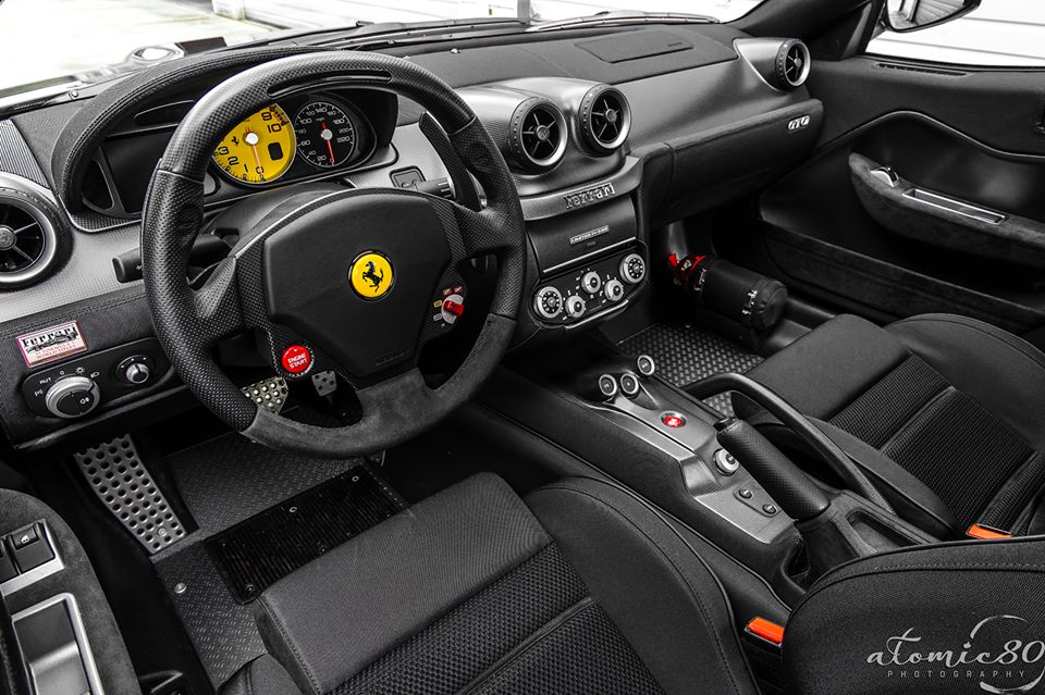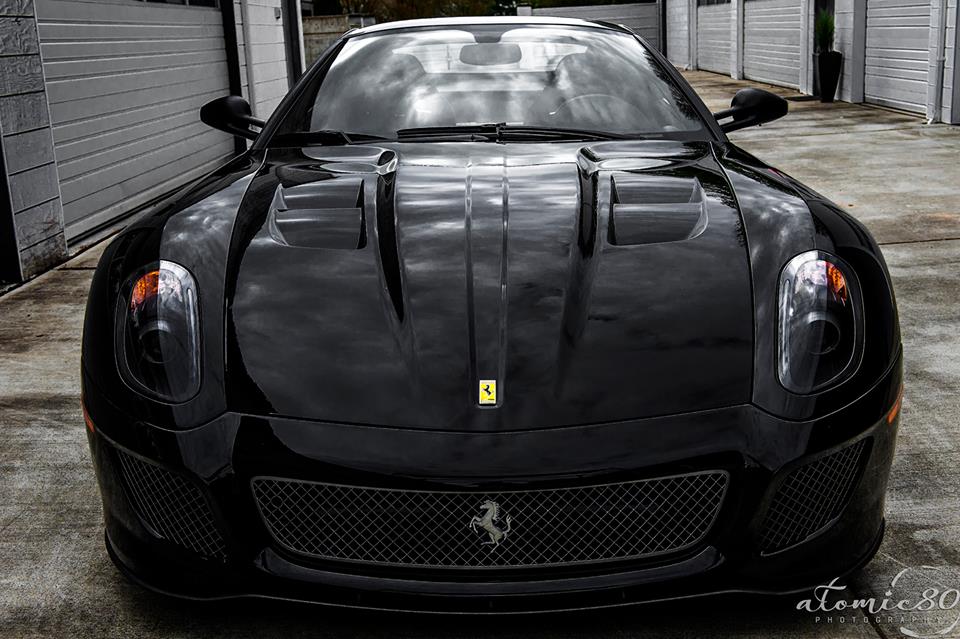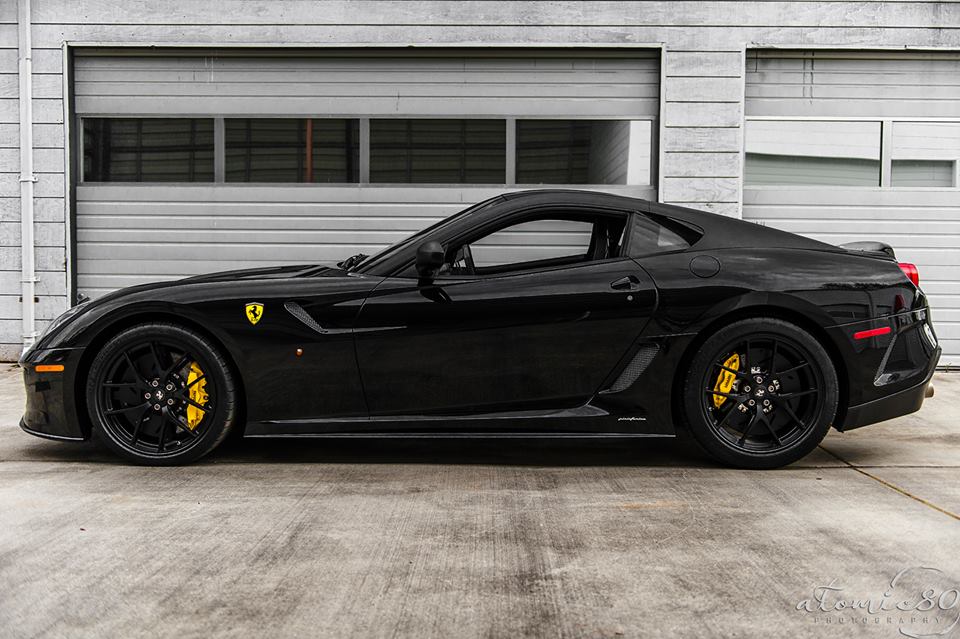 Granted, the 599 is hardly the prettiest Ferrari ever built, but the GTO with its two-tone paint jobs, lowered ride height, large wheels, and optional stripe looks very special. Of course, this fully blacked-out example you see here doesn’t benefit from the two-tone effect, but it looks even cooler what with the black wheels and yellow brake calipers.