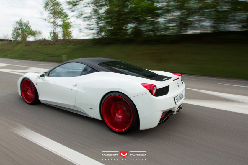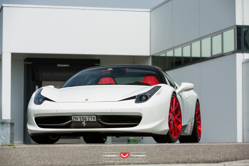 Vossen Wheels’ next big project comes from thousands of miles away from their Miami headquarters. They took with them a set of VPS-306 wheels in brushed red to Switzerland whereupon they were installed on a white Ferrari 458 Italia and gave it a fresh new look.