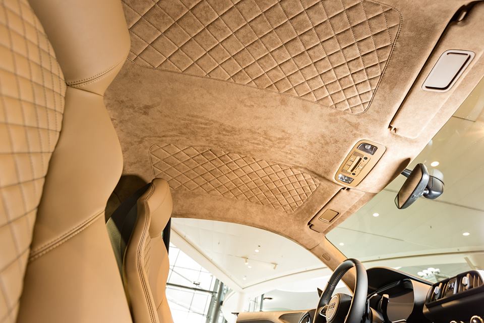 But the real highlight of Audi R8 V10 Exclusive and what truly sets is apart is the one-of-a-kind interior which has a lovely two-tone finish with black leather adorning the top half of the futuristic cabin and beige leather garnishing the seats and the bottom half. A good amount of Alcantara is used on the roof and on the floor to complement the leather. Contrast stitching is another notable feature of the cabin.