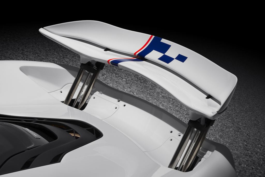 Designed to honor the legendary French F1 driver Alain Prost, McLaren P1 Prost is inspired by the patriotic French livery of the helmet worn by four-time Formula 1 world champion. As such, the car features a white body with blue graphics and red highlights.
