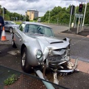 The cause of the accident is not yet known, but apparently the driver of Aston Martin DB5 collided with a Vauxhall Astra. The funny thing is – actually, it’s more ironic that funny – than the driver of the Aston had to be hospitalized for treating minor injuries he suffered in the crash, while the 20 grand Vauxhall, being a modern car, protected its occupants beautifully.