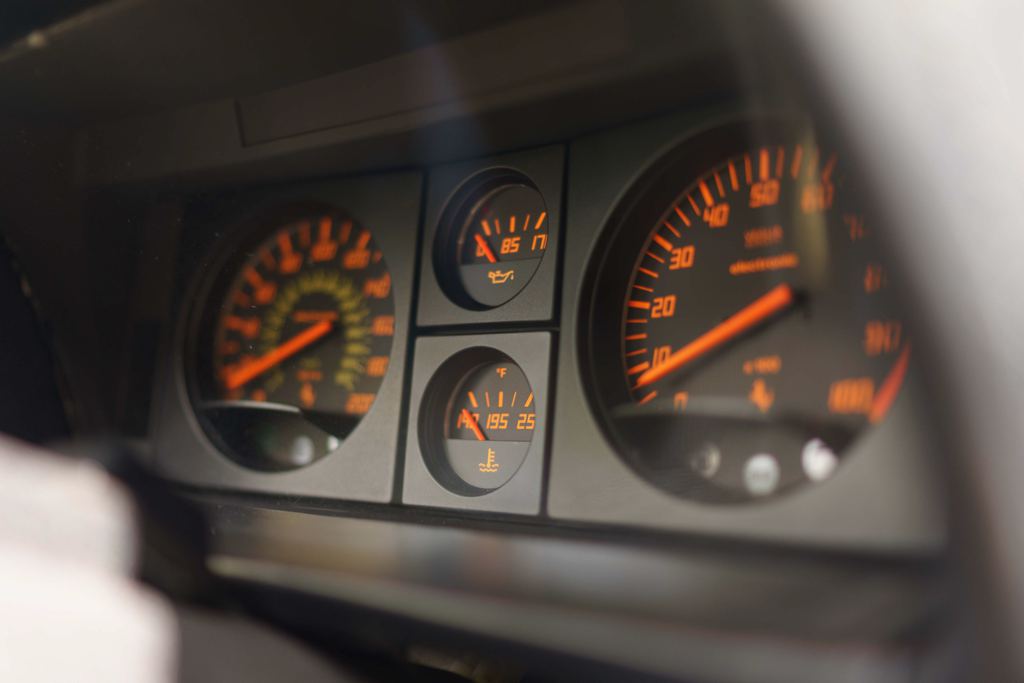 Speaking of the engine, Ferrari Testarossa is powered by a 4.9 liter, 390-horsepower flat-12 engine, mated to a five-speed manual gearbox with the a super cool gated shifter. Other highlights of the car include beige leather interior, power windows, power locks, power seats, cruise control and air conditioning.