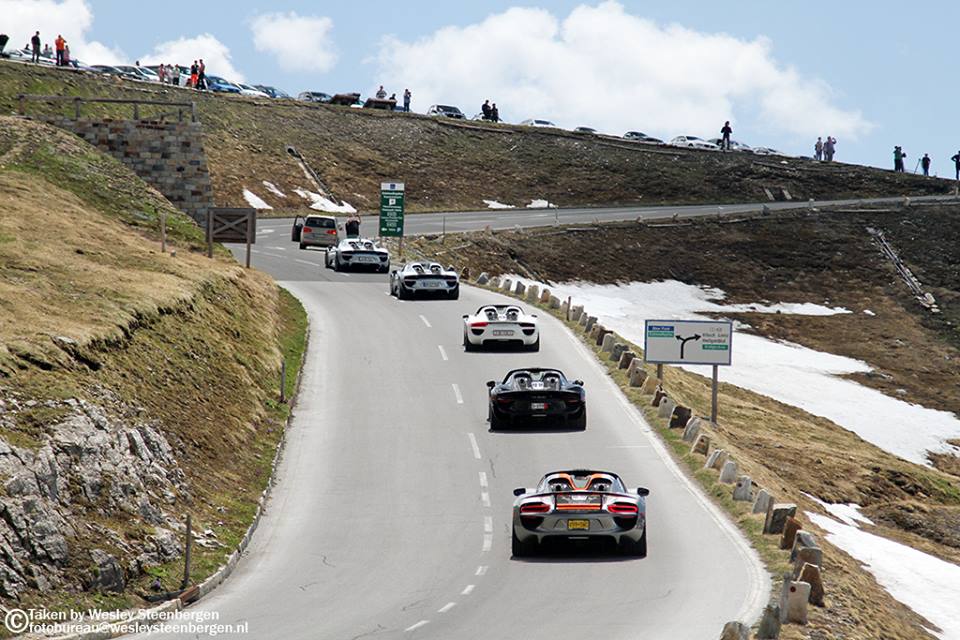 Grossglockner in Austria is the highest mountain in the Alps and home to some of the world’s best driving roads. It is a favorite spot for motoring journalists and driving enthusiasts, which means you get to see some pretty spectacular scenes up there… like five Porsche 918 Spyders driving around together!
