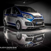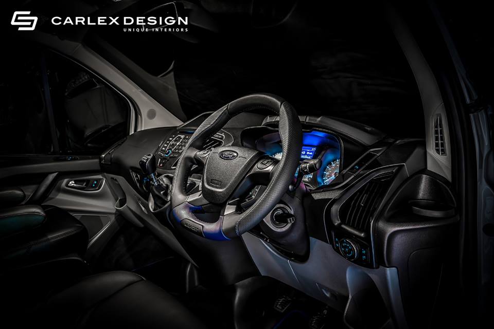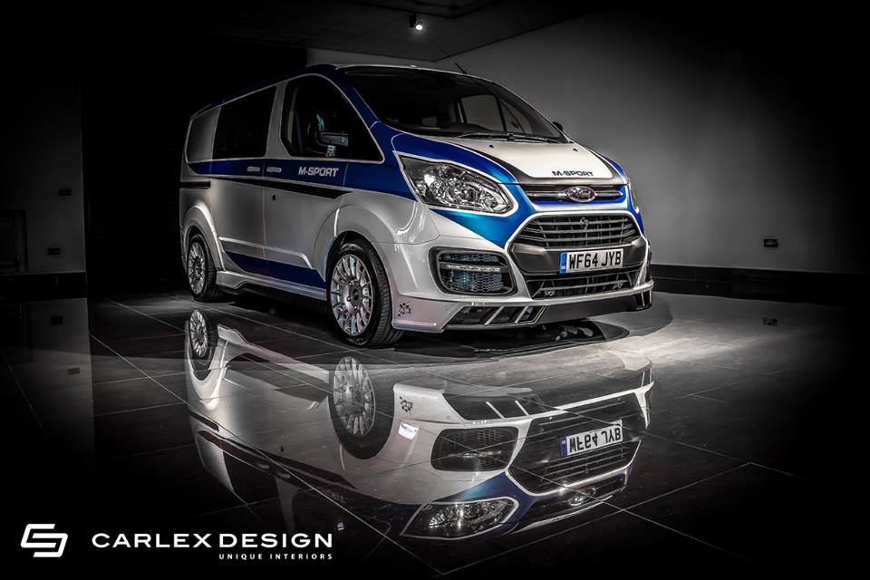 In the case of this Ford Transit M-Sport, Carlex has come up with a custom body kit consisting of front bumper conversion with extended spoiler, new grille and LED lights, side arch extension pack front and rear, rear tailgate spoiler, rear diffuser, and quad exhaust system. The kit is complemented with a set of limited edition 18-inch OZ wheels and Eibach lowered suspension.
