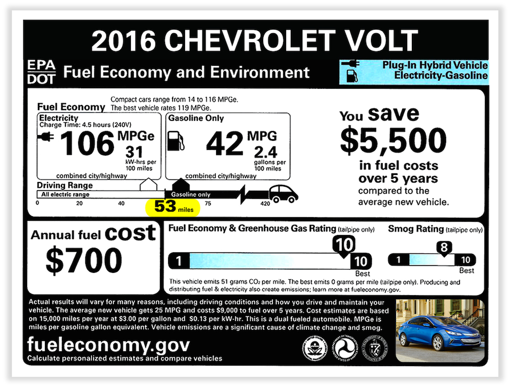 The EPA economy ratings for green cars are the equivalent of power and torque figures for ordinary cars. They are almost always the first thing potential customers consider. The Agency has now announced the official rating for the new 2016 Chevrolet Volt, and they ought to make GM very happy.