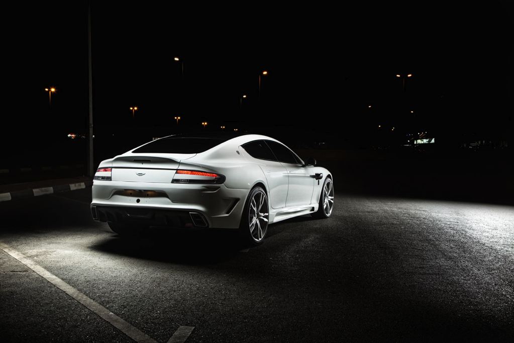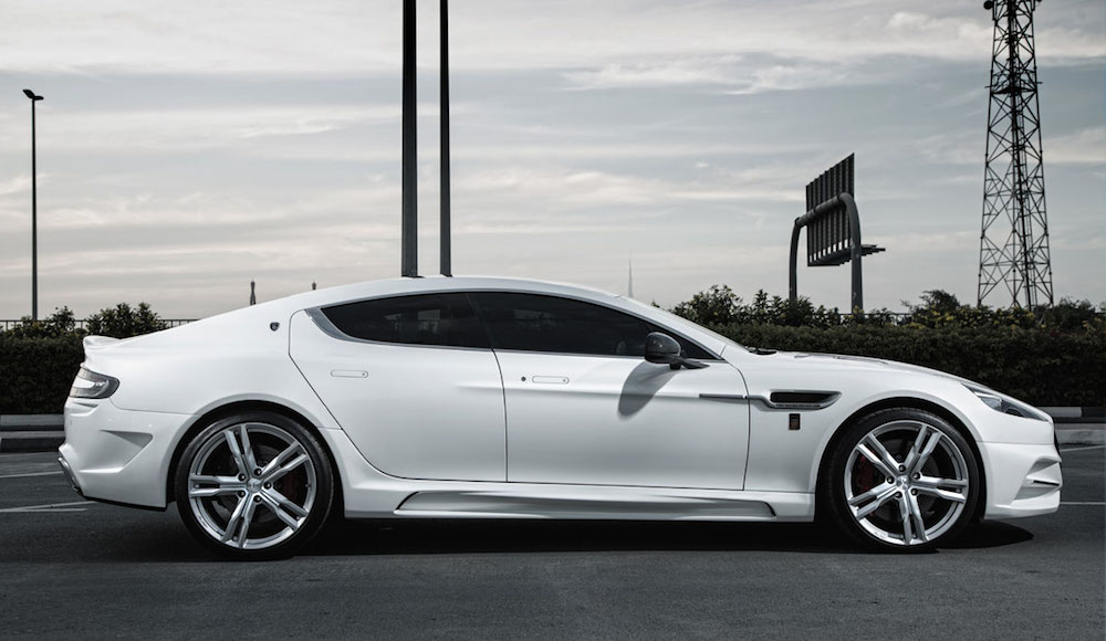 ARES Performance Aston Martin Rapide S comes with a custom lightweight carbon fiber body kit consisting of brand-new bumpers, sills, and aero parts such as front spoiler and rear diffuser, ARES custom-designed 21 inch forged wheels, and titanium sports exhaust system which in combination with an ECU upgrade boost the output to 610 horsepower.