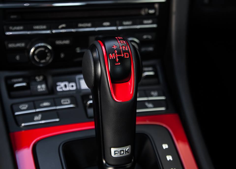 The interior kit for this unique Techart Porsche 991 Turbo S consists of a two-tone makeover with red accents, trim pieces and stitching adorning black leather and Alcantara surfaces. The instrument dials are finished in red as well and you get an exclusive sport steering wheel and a cool gear PDK gear lever as well.