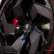 They are RS05.V2 models in gloss black with carbon spokes, in sizes 20×9 inch on the front and 21×12.5 inch on the rear. They have retained the Pirelli P-Zero tires out of respect for the Italian brand, and also because the red lettering on them is a nice complement for brake calipers and the red accents on the car.