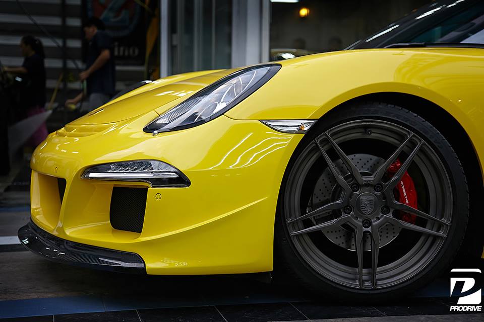 Thai tuner ProDrive has recently finished working on a very special car for a customer with, evidently, a great taste in style. The car in question is a RUF Porsche Cayman S Type 981 in yellow equipped with a set of exclusive ADV1 wheels.