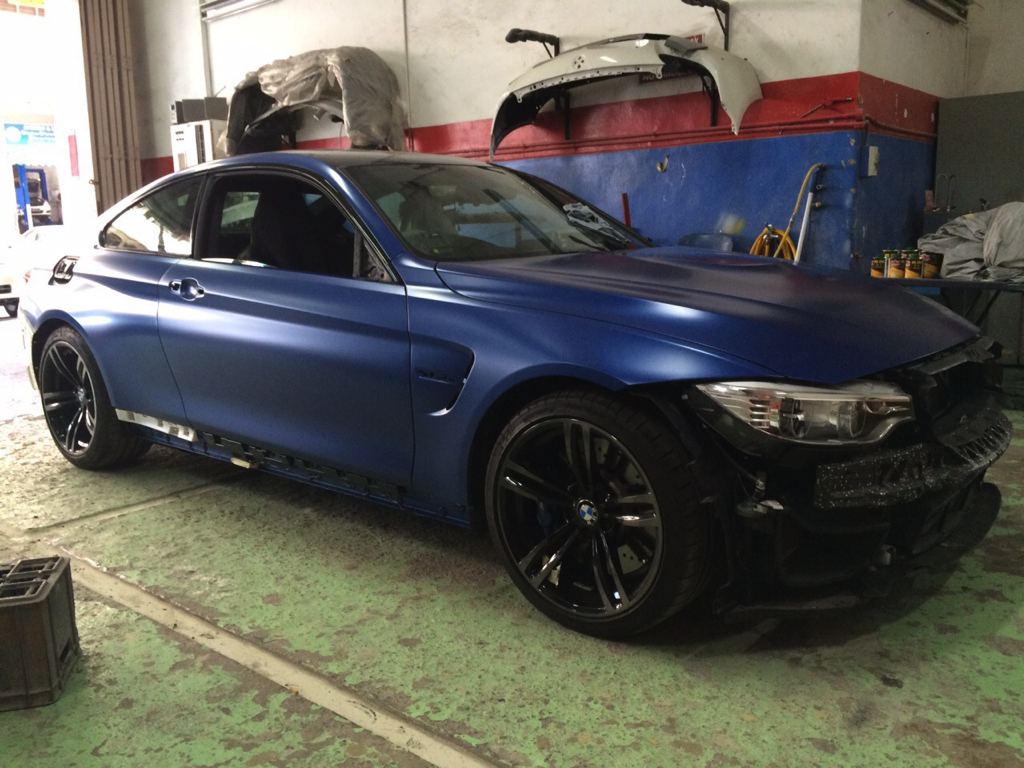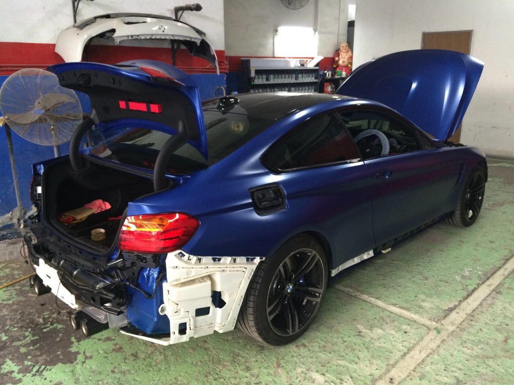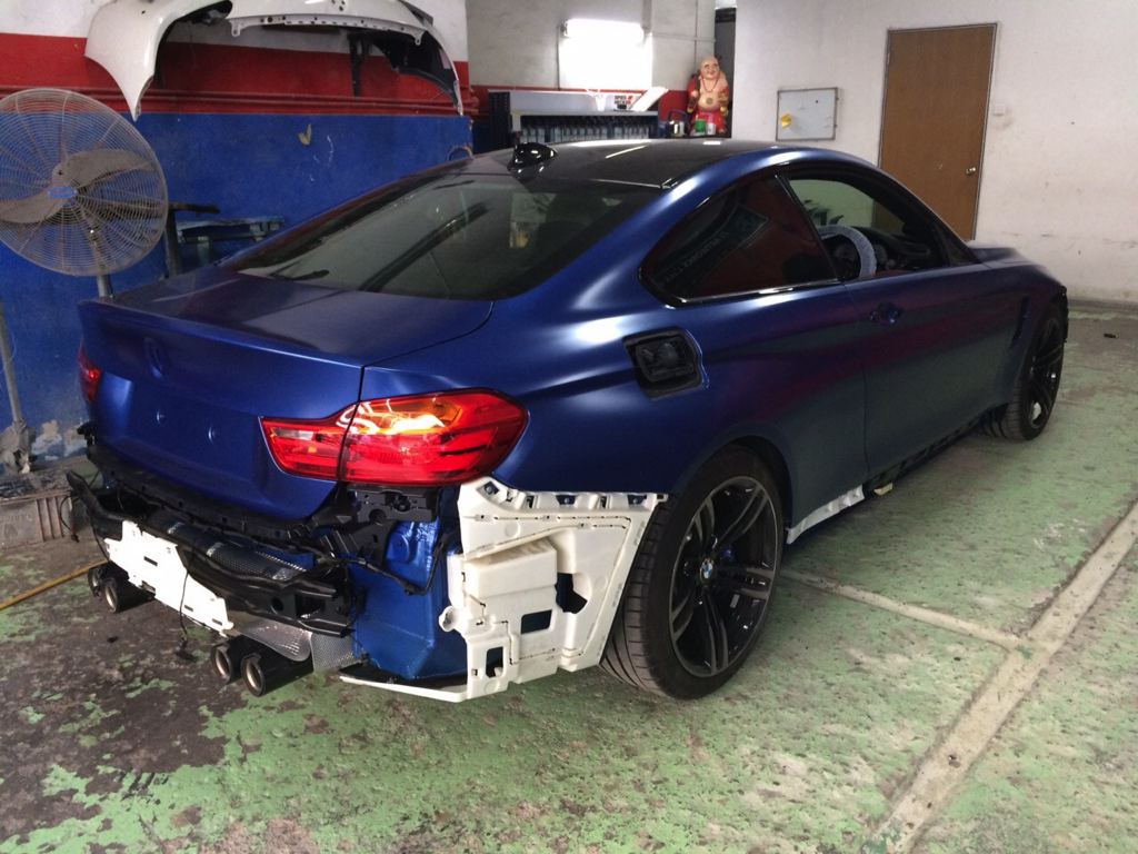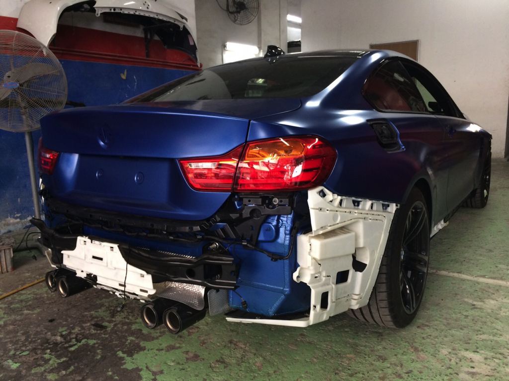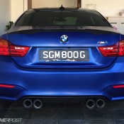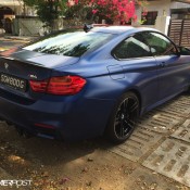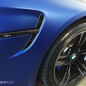 Before the color goes on though, the Frozen Blue BMW M4 was equipped with a number of upgrade parts, chief among which iND Chrome black front grills and side grills, M Performance rear diffuser and exhaust tips in carbon, carbon front lip and rear spoiler, BMC air filters, and M performance interior trims. Later on, the owner has plans to add M Performance side skirts, Alcantara steering wheel with M stripes, ModCarbon seat shells, and H&R wheel spacers.