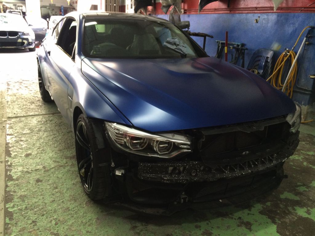 This M4 used to be Austin Yellow when it was new, but the owner didn’t like that color and wanted one of those frozen paint jobs. After looking at what the wrapping industry has to offer, he concluded only a real paint job can deliver the result he expects. So the car was stripped down and repainted in this cool shade of blue.