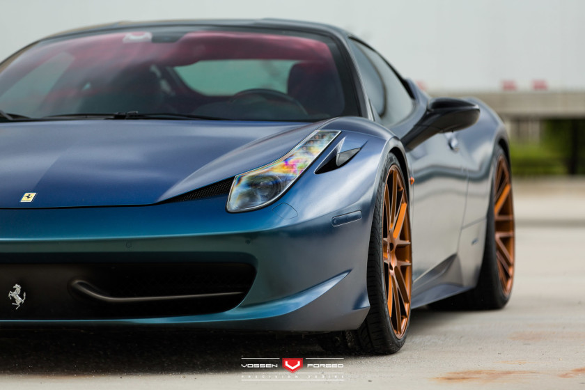Vossen Wheels has done up a new Ferrari 458 Italia which is, evidently, gunning for the title of most uniquely colored car in the world. Boasting a one-of-a-kind matt emerald green wrap, Vossen Ferrari 458 comes with a set of Burnt Copper Pearl wheels.
