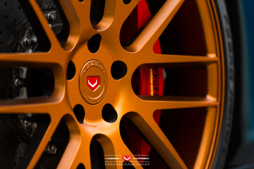 The VPs-308 wheels on this Vossen Ferrari 458, originally matte black, are painted using this method. It is so fast and easy to apply, you don’t even need to take the tires off the rims. You don’t even need a paint booth. Just cover the rubber with some tape, mix the Dip with solvent in a paint hun, and you are ready to go. As for how durable this treatment is, that remains to be seen.